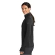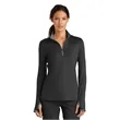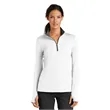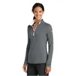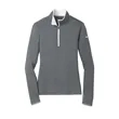 Nike Women's Dri-FIT Stretch 1/2-Zip Cover-Up. Built for the course, gym or just around town, this cover-up performs with comfortable stretch for uninhibited movement and Dri-FIT moisture management technology for exceptional cooling The design includes a contrast collar and zipper, open cuffs and an open hem Tailored for a feminine fit The contrast Swoosh design trademark is embroidered on the upper left sleeve.Thumbholes at cuffs for warmth and enhanced fit Made of 7.6-ounce, 93/7 polyester/spandex Dri-FIT fabric.