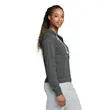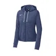 Nike Women's Gym Vintage Full-Zip Hoodie This hoodie has an old-school gym look with new-school style The design includes an oversized, three-panel hood with drawcords, front pouch pockets and open cuffs The contrast heat transfer Swoosh design trademark is on the right chest Made of 4.7-ounce, 60/40 organically, sustainably-grown cotton/recycled polyester.