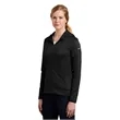 Nike Women's Therma-FIT Full-Zip Fleece Hoodie. Nike has elevated the classic hoodie by improving this year-round essential with incredibly warm Therma-FIT fabric which breathes and manages moisture The design includes a three-panel hood with dyed-to-match drawcords and zipper, front pouch pockets and open cuffs Tailored for a feminine fit with a drop tail hem The contrast heat transfer Swoosh design trademark is on the left sleeve Made of 7-ounce, 100% polyester Therma-FIT fabric.