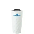 Send your promotional efforts further downstream in this attractive tumbler! The shapely Nile is 3.5" x 7" x 3.62" and crafted from ceramic material with double-wall construction, an easy to hold exterior diamond textured grip and PP slider lid for stress free sipping. It will hold 15 ounces of your favorite hot or cold beverages and is top shelf dishwasher safe. Choose from black or white and add your organizational or company logo, emblem or message to create a branded traveling companion that makes a great gift or giveaway at grand openings, trade shows, product launches, and all kinds of marketing and social events.