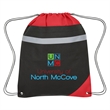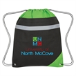Made Of 80 Gram Non-Woven, Coated Water-Resistant Polypropylene. Front Hook And Loop Pocket. Reflective Strip Accent. Reinforced Eyelets. Drawstring Closure. Spot Clean/Air Dry.