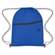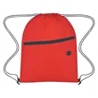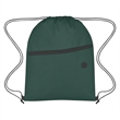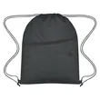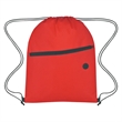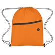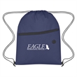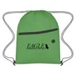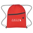 Made Of 80 Gram Non-Woven, Coated Water-Resistant Polypropylene. Large Front Zippered Pocket. Built-In Slot For Earbuds. Drawstring Closure. Spot Clean/Air Dry.