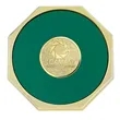 Eight is great when you protect those delicate serving surfaces with these octagonal beverage coasters. These 3 3/4 x 3/8 coasters are crafted from zinc alloy and leather for a sophisticated design that's just at home in a professional setting as your bar at home. Adds a touch of style to any event, from a football tailgate to a formal cocktail party. Select from 11 cool colors and add your school, sports team, organizational or company logo or message to customize.