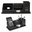 The Oxford executive desk organizer is stylish, yet functional, with a pen holder, 2 paper clip/accessory compartments, and a 100-page memo pad. It also includes a 3.5 wide spot for your phone with an integrated cut out to run your charging cord through and features white contrast stitching running along the edges.