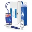Show off your brand in style with this handsome gift set! This 2.75" x 10.5" x 2.75" Parlour 4-piece gift set has everything needed for a productive day and life. It comes with a USA-made 25 oz. PET water bottle that's designed with an integrated carrying handle and flip-spout. The set also includes a silicone phone and card holder with a 16" lanyard. A 3-in-1 ballpoint pen with capacitive stylus and LED lights in also included in the set along with a 1 oz. bottle of hand sanitizer complete with a 50mm aluminum carabiner clip. Customize these items with your company's name, logo, emblem, or slogan. Gift this set to show your appreciation and gratitude!