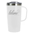304 Stainless steel inside and 201 inside for the 20 oz double wall vacuum mug with stainless steel handle for keeping drinks cold and hot for long periods of time. Available in glossy black, glossy white, and stainless silver.
