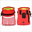 The Training Bag is made of Nylon and holds in generous amounts of dog training treats, accessories, and dog toys.Built-in poop bag dispenser. Around your waist or hips as it comes with adjustable waist belt, over the shoulder with removable shoulder strap or clip on your belt with carabiner.