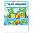 Pool and Water Safety coloring book fun pack with unimprinted 4-pack of crayons, packaged together in a convenient polybag. No assembly required. Book is 8" x 10 1/2" in size and features a full color cover and 16 pages of text containing coloring, games and activities. Books are recommended for children ages 3 and up.