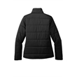 With wider baffles for a modern look, this water-resistant puffer looks cool while keeping you warm.. 100% polyester shell and lining. Molded center front zipper. Interior storm flap. Interior right chest pocket. Zippered hand pockets. Insulation method: 4.4-oz. polyfill. Water protection method: water-repellent finish. Port Pocket for decorationA access. Adjustable hem with locking drawcord
