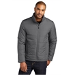 Port Authority Puffer Jacket With wider baffles for a modern look, this water-resistant puffer looks cool while keeping you warm. 100% polyester shell and lining Molded center front zipper Interior storm flap Interior right chest pocket Zippered hand pockets Insulation method: 4.4-oz. polyfill Water protection method: water-repellent finish Port Pocket for decoration access Adjustable hem with locking drawcord