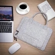 The felt material is used in the portable laptop computer bag. It has a large pocket and a small pocket. It is very convenient to put the tablet in the package when going out. This is a 13-inch laptop bag. We also provide laptop bags of different sizes, their prices are different, and colors can be customized. Custom logos are welcome, please contact us.