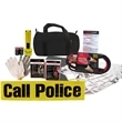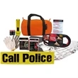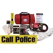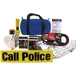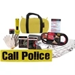 Constructed of heavy duty, water and puncture resistant 600D Polyester, this medium Barrel Bag features reinforced handles and bottom hook and loop strip that adheres to vehicle's carpet. Includes 8 Foot, 10 Gauge Booster cables with instructions, Flashlight with 2 Mercury-free D batteries, Emergency Mylar Blanket, Lightweight reusable Safety Vest, Lightweight reusable, recyclable Rain Poncho, 24 Hour Roadside Assistance, Call Police Banner, Cotton Gloves, Foam Pad