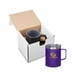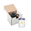 Enjoy your favorite hot beverages for longer when sipping from this 12oz. mug. This item comes packaged in a kraft gift box and has a matte finish and powder-coated design. While also double-wall vacuum insulated, this product has an interior made of 304 stainless steel and an exterior made of 201 stainless steel. Sipping while on the go is simple thanks to the included clear lid that's made of AS plastic material. With this mug, both hot and cold beverages will keep their temperatures for much longer than traditional insulation allows. Add your logo, brand name, or message to customize.