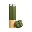 Stainless steel, bamboo;Double-wall, vacuum insulated; Wide mouth for ice cubes and easy cleaning; Stay on trend with this bamboo wrapped tumbler; Leak Resistant; Product Size: 11"h x 3" dia.;