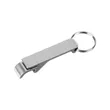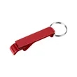aluminum;Aluminum bottle opener keychain; Designed for opening bottles and flip top cans; Laser engraves silver/white; Metal split ring comes attached; Product Size: 2.5" l x 0.5" w x 0.375" d;
