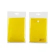 PE plastic;Made of 0.15mm PE Plastic; Disposable rain poncho with hood in compact pouch; One size fits most (adult-sized); Reusable, folds into 0.18mm PVC snap closure carry pouch (included); Imprint available on pouch only; Note: Poncho is reusable, but not designed for long term use, 2-3 uses each, approximately; WARNING: Keep away from small children. The thin film may cling to nose and mouth and prevent breathing.; Product Size: 5" w x 7.0625" h;