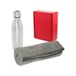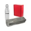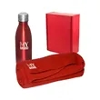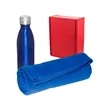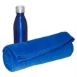 Gift Set includes one piece of our OD299 Economy Fleece Blanket and one piece of our 17 oz. Vacuum Insulated Bottle in a gift box.; Bottle: Stainless steel; Blanket: 10 oz.,100% polyester fleece ;Features matching whipstitch trim; Machine washable; Double wall insulated bottle with Cooper lining that helps keep your cold drinks colder longer and warm drinks warmer longer; Features screw on lid; Hand-wash only; Do not microwave; Product Size: 9" w x 11.25" h x 4.25" d;
