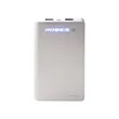 ABS plastic;Rechargeable lithium polymer battery; capacity: 12000mAh;input: DC 5V/1000mA DC; output: 5V/1000mA and 2000mA; Emergency battery features progress indicator bar anddual USB A-type output ports - 1A and 2A; Includes instruction manual and micro USB to USB-A power bank charging cable; phone charging cables not included; This item can only ship to the contiguous United States via ground; Product Size: 3" w x 6" h x 0.5" d;