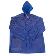 Lightweight EVA rain jacket in matching 190T Polyester drawstring pouch;Jacket includes hood with drawcord; Features 2 side flap pockets (approx 7"w x 7"h); Snap closure; One size fits most adults (approx 26.7"w x 33.85"h flat); Water resistant; Hand wash only; Product Size: 7.5" w x 11" h;