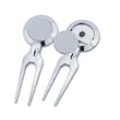 Nickel-plated zinc alloy;Golf tool with removable magnetic ball marker; Press bottom edge of golf ball marker to release magnet; Product Size: 1.125" w x 2.315" h;