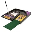 Let your visitors show off their skills to win prizes. Game board is constructed of ultra-durable ABS plastic. Game board is two separate pieces that attach together using hook-and-loop fasteners. All graphics are printed on a repositionable, adhesive-backed media with a textured finish. Included turf matt attaches using hook-and-loop fasteners. Putter and three balls included. Soft carry case (sold separately) is recommended for transport.