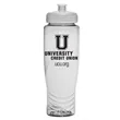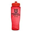 Translucent plastic bottle, 28 oz Polyfresh™. Recyclable and BPA free. Wide mouth perfect for ice cubes. Push/pull twist-on cap free assembly. Same color, second side or wrap imprint at no additional charge. Ounce gauge molded into back of bottle. Size: 9 1/2 H x 3 Diameter.