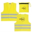 Made out of 190T Nylon, the reflective safety vest is a one-size-fits-most (24" W x 25" H). This features 2 hook-and-loop closures and reflective strip accents. With it included is a zippered pouch for storing it in (7" W x 7 1/2" H).