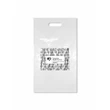 Your message will stay top of mind and will be seen by many people when it's imprinted onto this plastic bag! Made from 100% recyclable material and featuring a die-cut handle, this white or clear bag measures 7.5" W x 15" L, however it's available in multiple sizes as well. It's a perfect choice for retailers, tradeshows, conventions, company goodie bags and much more. Customize each one with an imprinted brand name, logo or advertisement and your next marketing campaign will be in the bag!