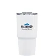 This 3.62" x 7.06" x 3.62" 20-ounce Reva container has a double wall stainless steel construction with a vacuum-sealed insulated copper lining that maintains hot drinks for 10 hours and cold ones for as long as 18. The clear sliding AS plastic lid makes for blissful sipping and the FDA approved and BPA free design fits into most automobile cup holders. Choose from six metallic-inspired shades and add your company or organizational emblem, logo or message to the side to build a branded item for grand openings, product launches, marketing events and convention tables.