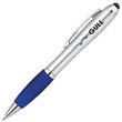 Give out this promotional pen and become synonymous with success! This 2-in-1 tool features a twist-action ballpoint with an hourglass shaped barrel, colored rubberized grip, metal clip, chrome trims and capacitive stylus that works with touchscreen devices. These handy writing tools make the perfect promotional giveaway when customized with branding such as your logo, contact information or other marketing message. Ideal for tradeshows, seminars, swag bags and much more!