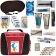 Get clients ready for a fantastic vacation with this road trip travel kit! This comes with everything one needs for a fun, exciting getaway. Included is 1 shampoo bottle (1 oz.), 1 conditioner bottle (1 oz.), 1 two-piece travel toothbrush, 1 Freshmint toothpaste tube, dental floss, deodorant soap, 1 stick of deodorant (1.6 oz.), 1 plastic comb, 1 twin blade razor, 1 shave cream tube (.85 oz.), 1 tissue pack, 4 Purell anti-bacterial wipes, 5 flex-fit bandages (3/4" x 3"), and more. Mark this with your logo and give customers much more than they ever expected!