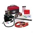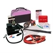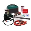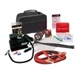 Roadside emergency kit with trunk organizer. Constructed of 600 denier polyester, this 71 piece Roadside Emergency Bag features a fully lined & reinforced main compartment with 2 full size inner mesh pockets, outer front pocket and an integrated expandable 3 3/4" wide trunk organizer. Decorative accent piping and stitching, carry handles and bottom hook & loop closure strip to adhere to vehicle carpet. Includes: 24 Hour Roadside Assistance, 8' 10 gauge CCA Booster Cables, Mini Air Compressor, Rubberized Flashlight w/ 2 Mercury-free, heavy duty "D" Batteries, 51 pc First Aid Kit, Emergency Poncho (lightweight, reusable), Cotton Knit Gloves, 10 Cable Ties, and Call Police Banner (11" x 22").