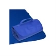 Made of Polyester Fleece, Blanket rolls up for carrying, Carrying handle included, Hook-and-loop secure closure 48" W X 53" L open. Complies with Prop 65. 48" W x 53" H