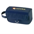 A great promotional handout for your customers who travel often, this roll-up toiletry & travel kit provides you with additional space by reducing bulkiness of your overnight necessities. Made of PVC 70 denier nylon, this kit features one main zippered compartment for large capacity storing, clear PVC pockets for personal care accessories, a Velcro closure and metal hanger ring. Measuring 11"L x 8.5"W x 6.5"H when open and 11"L x 22"W x 4"D, this customizable kit is perfect for your next event.