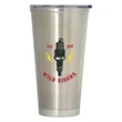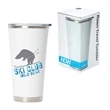 18/8 Stainless steel tumbler with ceramic lining and is double walled with vacuum insulation. Glossy exterior finish. Silver rim and base. Inner white ceramic lining. Push on clear acrylid lid with slider closure. Holds up to 600 ml. (20 oz.). For use with hot and cold beverages. Individually retail packaged. BPA free and FDA compliant. 3.75" Diameter x 7" H.