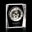 Rupert Clock - Optical 5 1/2". Thick Optical Crystal Clock with deep beveled cuts. Classic mechanical clock face. A gift sure to impress.