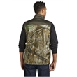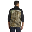 Modern, lightweight and ideal as a work-to-play outer layer for those who love hiking and time in the outdoors. Brushed fleece interior is perfect for layering on a crisp fall day or over a tee on a cool spring morning. Colorblock chest area provides ample decoration space to highlight a logo and allow your branding to shine.. 8.4-ounce, 100% polyester with TPU laminate and brushed fleece interior. Durable water repellent (DWR) finish. 5K/5K weather protection. Realtree EDGE print. Chest pocket and zippered hand pockets with molded zippers and brushed metal pulls. Exterior embossed faux leather tab at hem