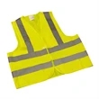Safety vest. ANSI/ ISEA 107 2010 class approved 100% polyester mesh & reflective strips. Roomy, lightweight, reusable, machine washable. Front and back 2" reflective strips for superior visibility. Hook & loop closure. One size fits most. Ideal for day or night roadside emergencies and outdoor services such as construction, road work, landscaping, emergency services etc.