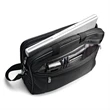 Remind clients how great you are together with the Samsonite Business Perfect Fit Two Gusset Computer Portfolio. The two gusset business case secures laptops 13 - 15.6 in the exclusive perfect fit system computer sleeve. There's an easy-access front pocket and the front panel features dual pockets with an organizer pocket for essentials. There's a comfortable wrapped bale handle, an adjustable shoulder strap and a trolley strap that slips over luggage handles for easy transport.