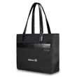 A tote for any stylish, modern executive to carry your everyday essentials. Top recessed zipper closure to access the main compartment. Front zippered pocket. Interior slip pockets, zippered pocket and key leash. Center padded laptop compartment (sized to fit up to a 15" laptop). Padded tablet pocket with tricot lining (sized to fit up to a 11" tablet). 10.5" leather cushioned shoulder straps. Trolley strap feature slips over luggage handle for easy transport