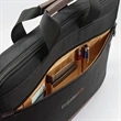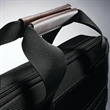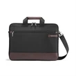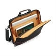 A business brief engineered to fit a busy lifestyle. Front zippered pocket with key fob and multiple pockets for organization. Large main compartment with zippered closure includes an interior laptop pocket (sized to hold up to a 15" laptop) Zippered mesh pocket inside main compartment. Rear zippers allow you to have an extra pocket or use it as a SmartSleeve so you can transport Slim Brief on top of an upright. Adjustable, removable shoulder strap.