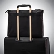 Chic solutions for the modern professional. A comprehensive offering of travel and lifestyle essentials, the Mobile Solution Collection features superior functionality in timeless, lightweight styles. 3-in-1 convertibility: Using or removing the adjustable strap, the bag can be carried in 3 unique ways; handheld mode, crossbody mode or shoulder mode. Water resistant coating on the nylon body material. Front zippered pocket stores essentials needed quickly. Main compartment is fully padded to hold a laptop (sized to fit up to a 14.1" laptop). Interior organization includes two slip pockets and a larger sleeve for tablet storage (sized to fit a 9.7" tablet). SmartSleeve™ fits over most upright luggage handles for easy mobility.