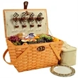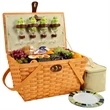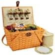 Have new and potential clients swooning over your brand with this settler picnic basket for four! The American-style settler basket has a romantic feel and includes a complete picnic set for four. Fully lined and hand woven with traditional wood slat material, it has a vintage appeal. It features swivel wood handles and faux leather straps and closure. This set includes coordinating melamine plates, cotton napkins, glass wine glasses, stainless steel flatware, a corkscrew and a convenient food cooler. Recipients will find it easy to spread the word about your brand with such a fun marketing tool!