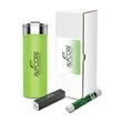 Welcome attendees and guests at a trade show, convention, or any marketing or social event with this three-piece safety-conscious gift set. Inside are an 18-ounce double-walled powder-coated stainless steel vacuum tumbler; a six-light LED strip that includes a magnetic back and wrist strap for easy mounting; and an aluminum-cased rechargeable powerbank with 2200mAh of charging power. Add your school, sports team, organizational or company logo, emblem or message to each piece of this set through our signature imprint process. Each set comes with a full-color customized box and packaging.
