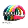 Oversized, soft squeeze grip design, supports ease of carrying heavy weight Eliminates multiple trips from car to kitchen, up stairs and more Durable locking tab, safely secures multiple bags Easy open thumb tab High strength, with a capacity to carry up to 50 lbs Made of ABS plastic to provide strength and durability