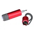 This aluminum 1 LED, 25 Lumen flashlight comes with 4 bit screwdriver and a silicone strap for hanging from beltloops, bags, etc. (3 LR44 button batteries included)