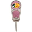 Leave the green just like you found it with this 3 1/4" x 1" zinc and aluminum golf ball marker with an attractive matte nickel finish. The single-prong design lets you mark the ball without excess wear and tear to the ground. Add your organizational or company logo or message in a bold, four-color reproduction at the top end of this ball marker, and choose from an assortment of colors to match your business. This item is the perfect pairing for golf courses, pro shops, corporate golf outings, or even just going head-to-head in a friendly game against your favorite competitors. Lock up the links with this great golf item!