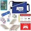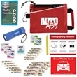 Show customers that you care about their well-being when you give out this Slimline auto kit! Inside of a ripstop nylon pouch measuring 7" x 5.5" comes several items that can help when in an emergency: 6 LED Super Bright 100 Lumen Dorcy Flashlight, rain poncho, call police banner, and various first aid items. Get this in one of several colors and have your name silkscreened on it to complete the look. Your customers will love getting something they can put into use!