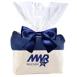 Perfect on the go sack filled with snacks. Keepsake and convenient canvas zipper pouch filled a variety of brand name snacks to keep show attendees going throughout their busy day. Includes granola bar, fruit snacks, Ghirardelli chocolate and Milano cookies. We'll customize a snack sack to fit your budget and event needs. Choose from a variety of bags and filler options. Each pouch is wrapped in clear cello and tied with a bow for a fun and fabulous gift giving presentation. Other filler and bag color options available to fit your budget and corporate colors. Full color hang tag available, printed with your logo and message attached to each pouch.