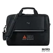 Your brand is serious business and showing off your branding should be serious too. The Solo Chrysler briefcase provides a distinguished look to match your company image. The 3" x 11.75" x 16.5" polyester bag is part of the Solo City collection and features a zippered padded compartment that holds laptops up to 15.6". It also includes a padded center compartment with a file divider and a side pocket with organizer compartments and a key clip. This briefcase has a 1 1/2" x 29" removable and adjustable padded shoulder strap. Customize this bag with your company or organization's name, logo, and/or organizational message. Professionals and students will appreciate this branded briefcase!